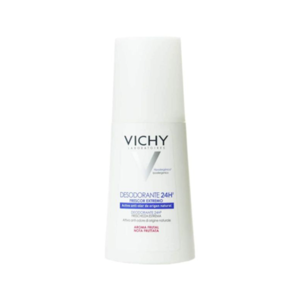 للحماية الكاملة طوال اليوم فلا تتردد في اقتناء مزيل عرق فيشي اكستريم الذي يمنحك الشعور بالنظافة والانتعاش، فهو يتميز بتركيبة جافة تمتص الرطوبة بفعالية للحفاظ على راحة بشرتكِ، كما أنه مثالي لجميع أنواع البشرة بما في ذلك الحساسة منها فتركيبته آمنة تماما ولا تسبب تهيج البشرة.